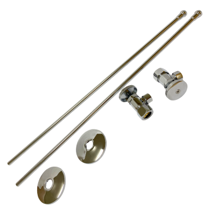Angle Stop Kit with Round Handles, a 5/8 in. OD (1/2 in. Copper) Inlets with a 3/8 in. OD Compression outlets with nut and ferrule.